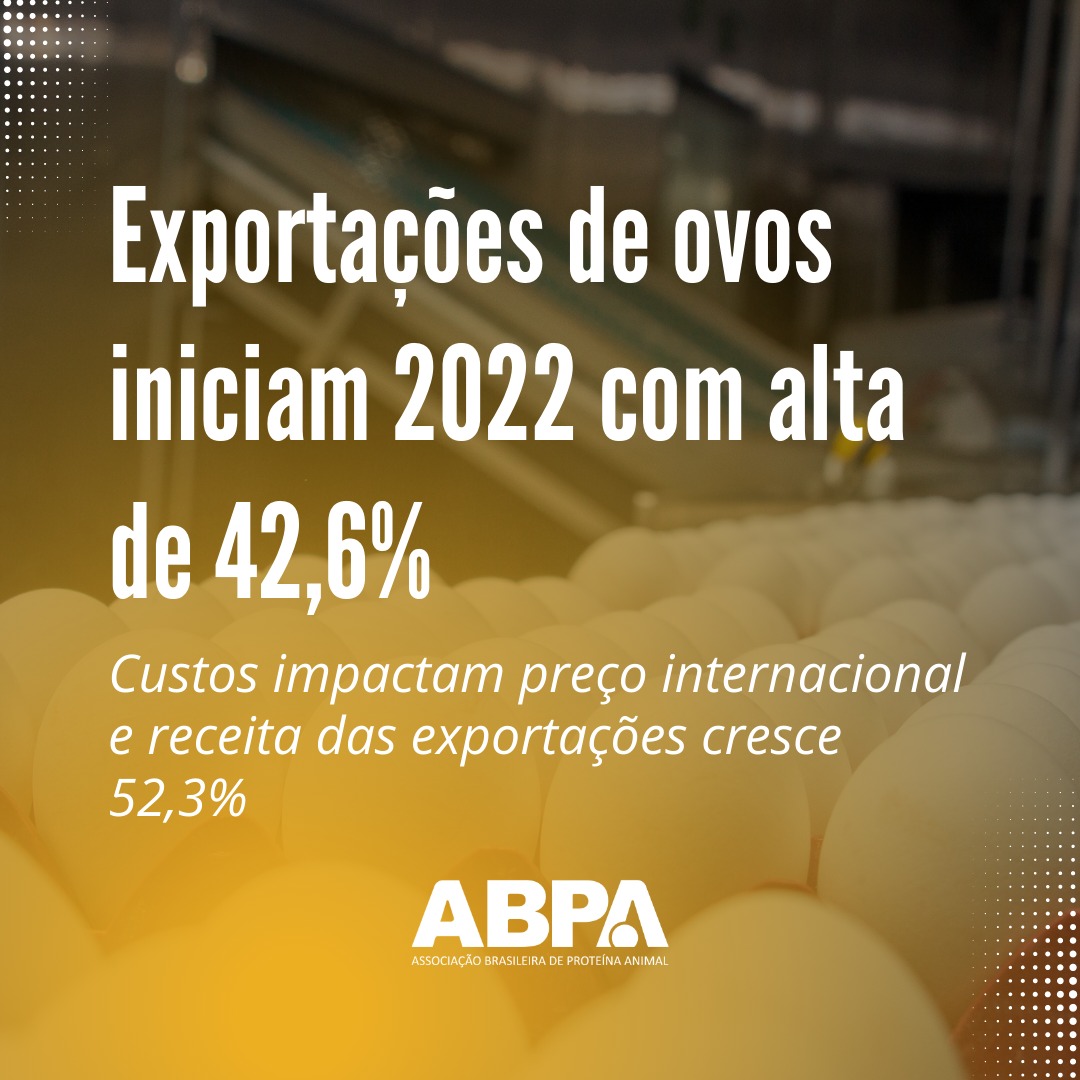 Exportações de ovos iniciam 2022 com alta de 42,6%